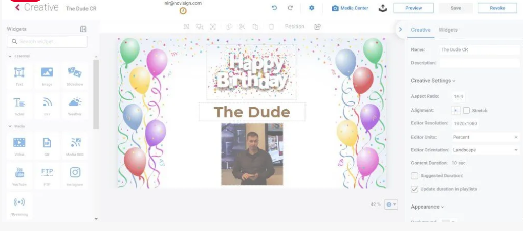 Once the creative is approved, the audit user will be able to use it in his playlists and screens.